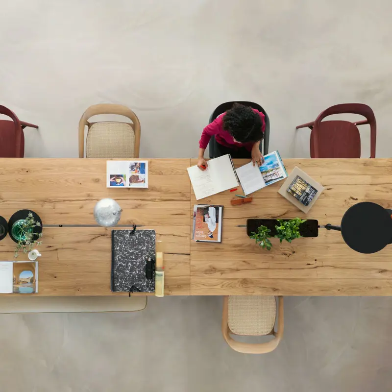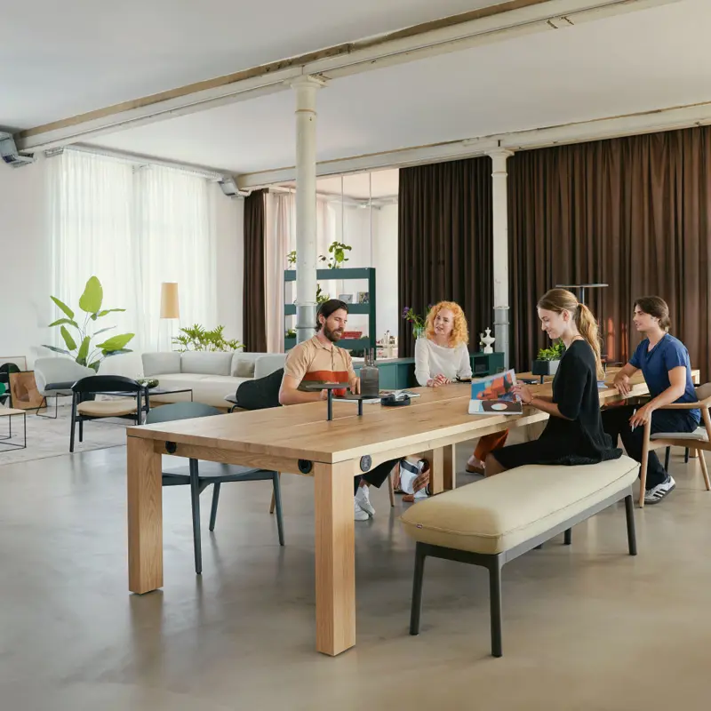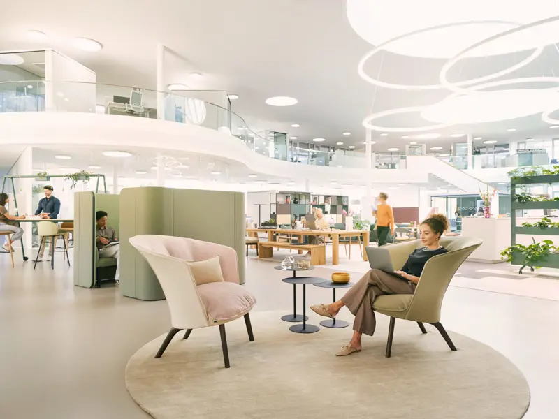 The strongest workplaces rarely rely on one single format. They combine calmer individual settings, more structured shared zones and social spaces that feel warm, useful and easy to use.