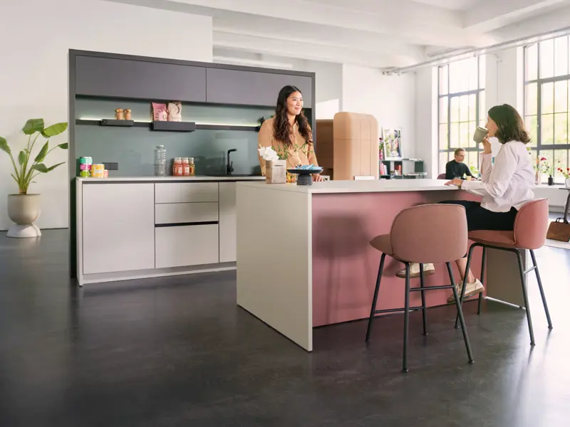 se:café bar is designed to sit at the heart of the Work Café, combining a homely atmosphere with the practical features needed in everyday office life. With wall modules, room dividers, islands and tall cabinets, plus options for drinks, appliances and storage, it helps create a shared setting that feels warm, practical and genuinely part of the working day.