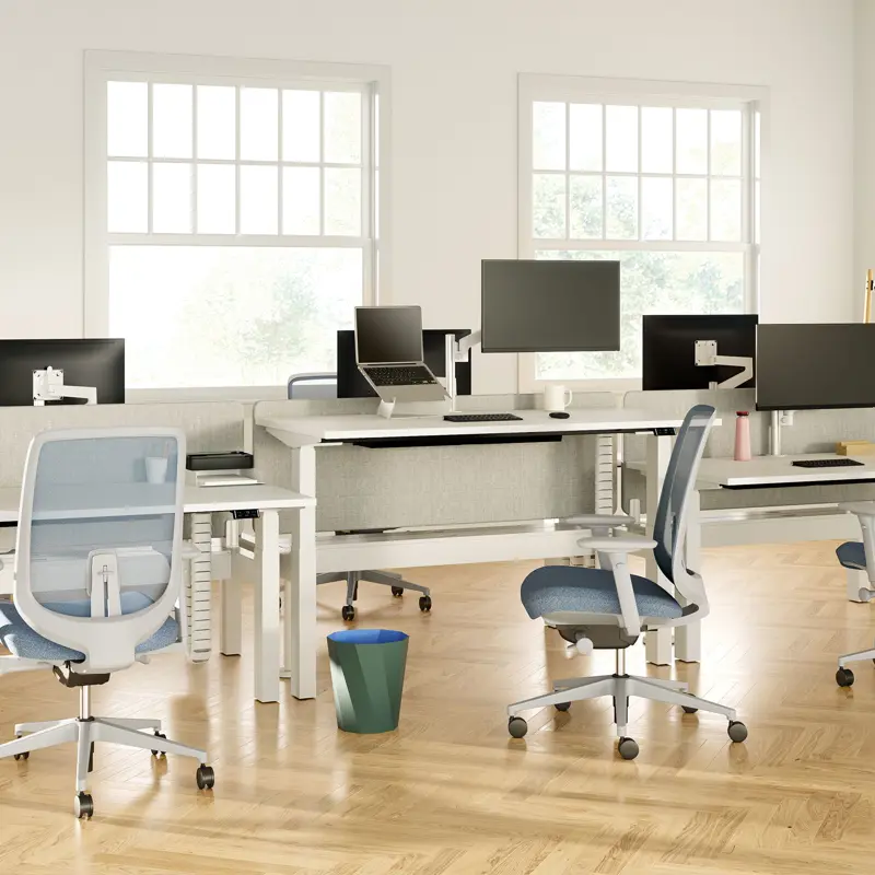 MillerKnoll’s collective brings together some of the most influential brands in modern furniture, offering everything from high-performance task chairs to modular soft seating and flexible work tables. Each piece has been carefully selected for its exceptional design quality, comfort, and ability to perform beautifully in real-world spaces. Click any item to view details, configure finishes and add favourites to your wishlist for a fast, tailored quotation.